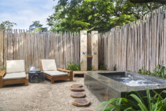 There’s a real wow about the place, the imaginative use of wood and themes from nature in the décor, the sharp, elongated 40m pool; the comprehensive spa with its individual treatment bungalows. The restaurant is extremely highly rated (private dining on request). There’s something here for everyone: a multi-function gym or stand-up paddling are among activities on offer for the energetic, hammocks and armchairs where you can doze or read a book, and a ‘chill’ area by the pool where you can relax to the background of jazzy international ambient music.