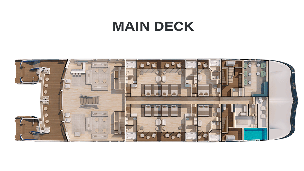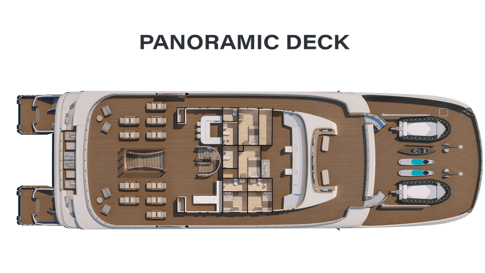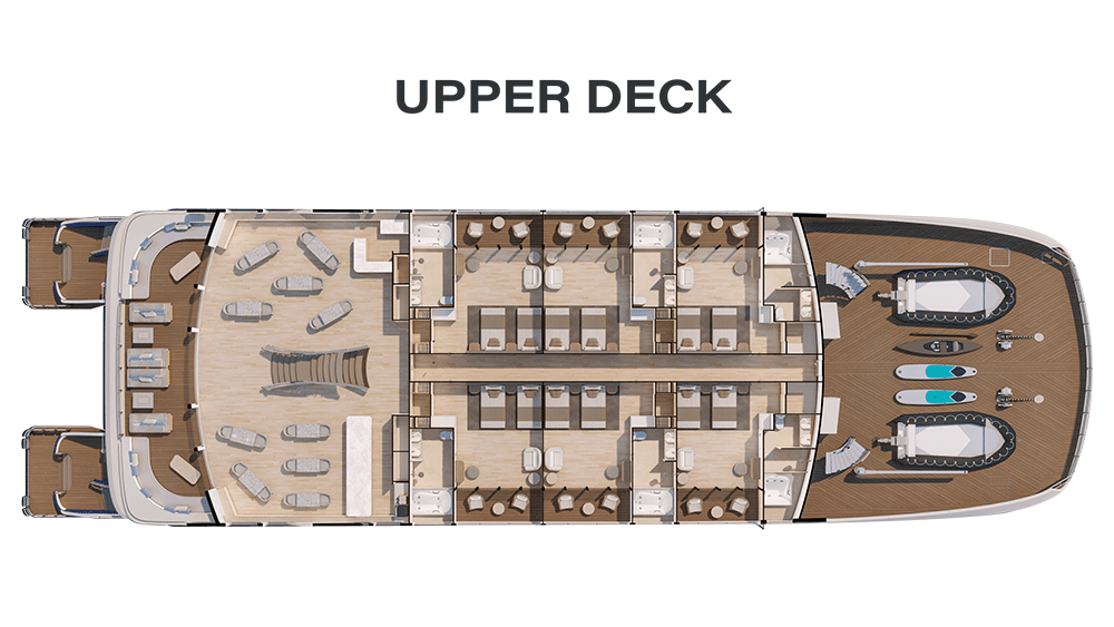The inclusions are another feature that sets the vessel apart. All snorkelling, kayaking and stand-up-paddle boarding equipment, including wetsuits, is complimentary. As are entrance fees, internet access, meals, non-alcoholic drinks, selected alcoholic drinks, laundry service, butler service and access to the VIP area at the airport upon departure (restrictions and exemptions apply).